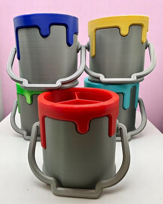 3D Printed Paint Bucket Pencil Holder – Fun Brush Organizer, Art Desk Decor, Creative Gift for Artists & Students